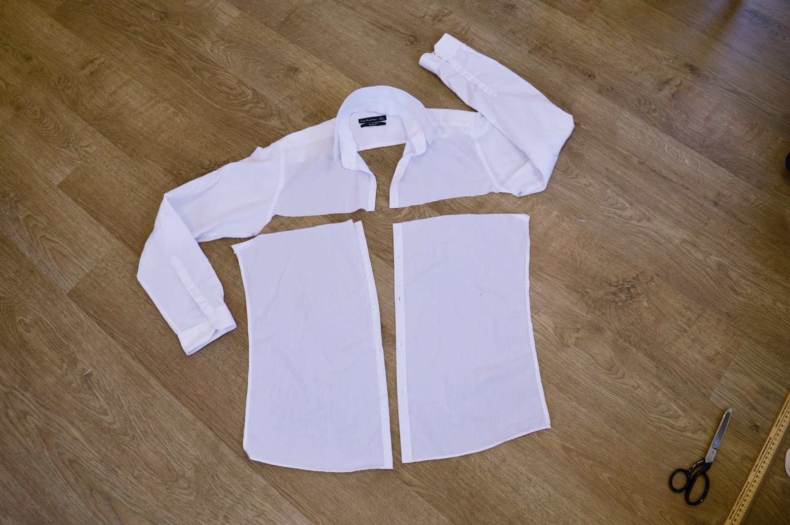 I cut the backs off the remaining two shirts entirely and unpicked the waist darts that were giving them a slightly fitted shape. This opened up two nice unblemished expanses of fabric.